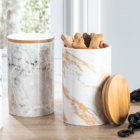 We love our water ceramic bowl and treat tin canister. The designs are so stylist and good quality.